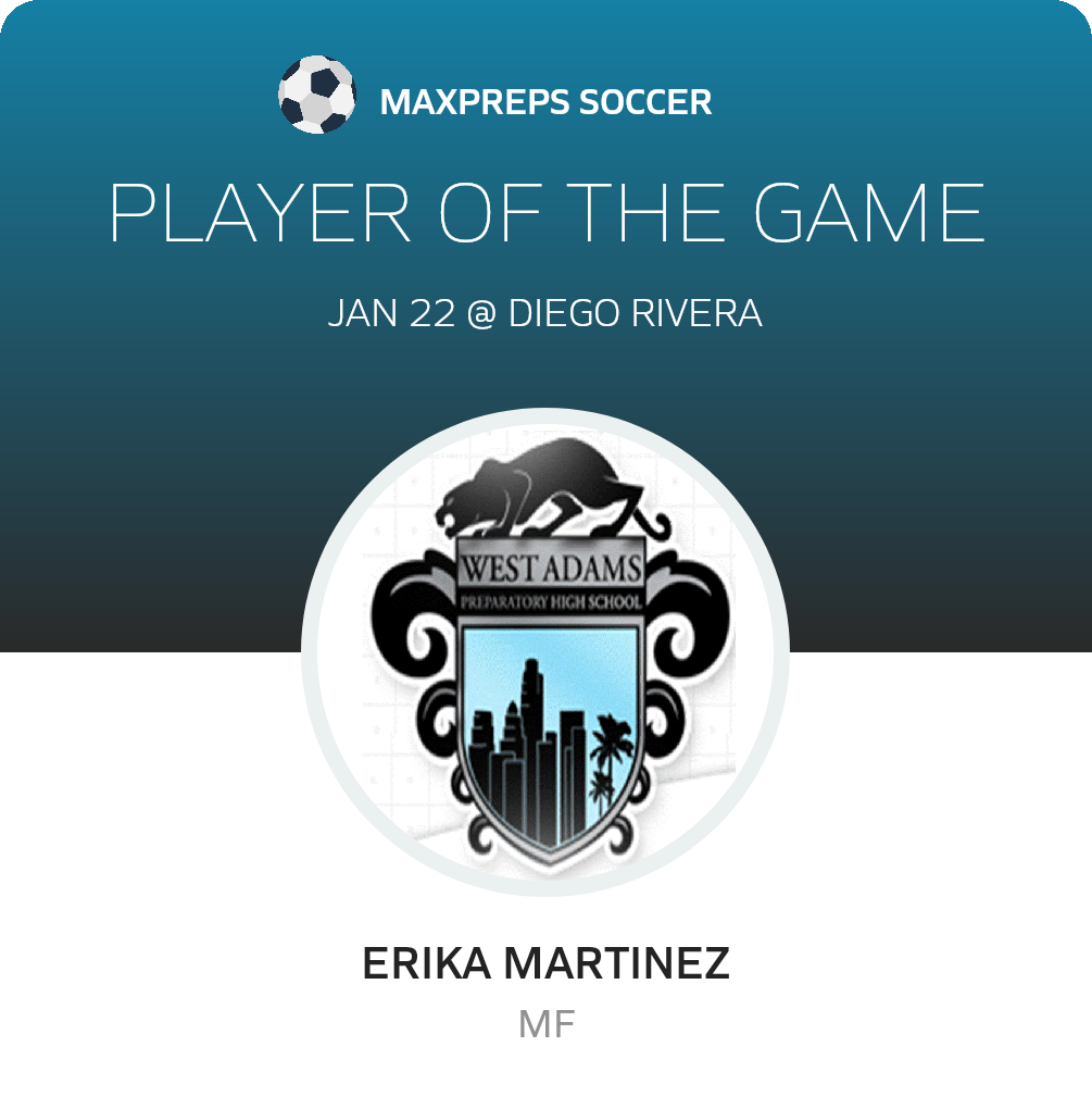Congratulations to Erika Martinez for being selected the West Adams Girls JV Soccer Player of the Match.