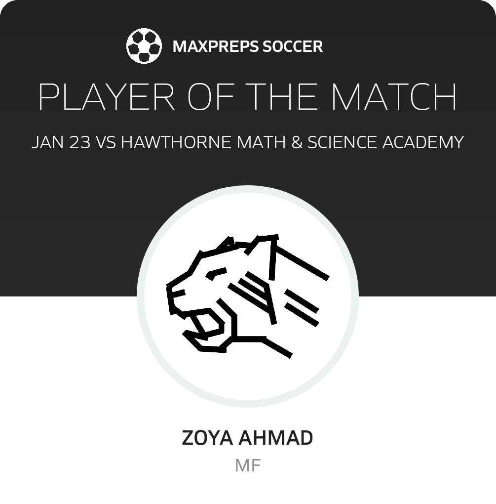 Congratulations to #16 Zoya Ahmad for being selected the New Roads Girls Soccer Player of the Match.