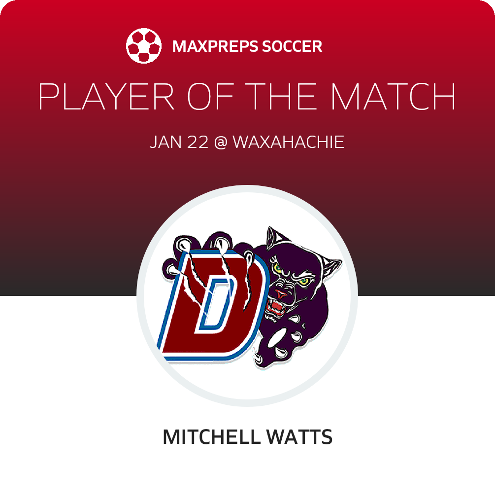 Congratulations to #3 Mitchell Watts for being selected the Duncanville Soccer Player of the Match.