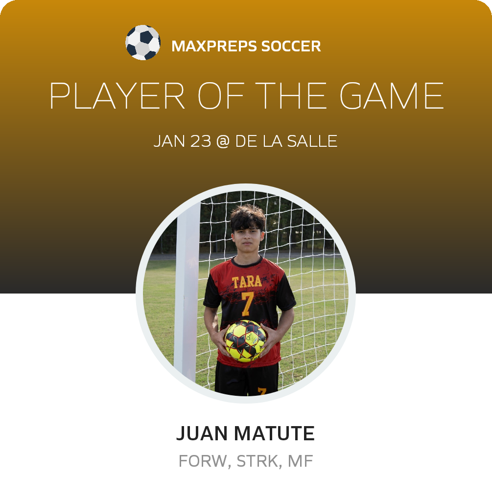Congratulations to #7 Juan Matute for being selected the Tara Soccer Player of the Match.