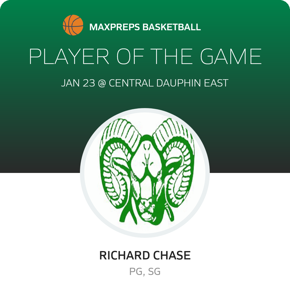 Congratulations to #13 Richard Chase for being selected the Central Dauphin Basketball Player of the Game.