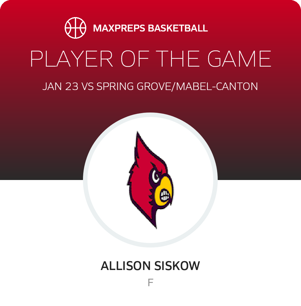 January 23, 2025: LeRoy, MN 55951 In Thursday's league test, the Spring Grove/Mabel-Canton (Spring Grove, MN) basketball squad trounced the host LeRoy-Ostrander Cardinals (LeRoy, MN), by a score of 61-18.