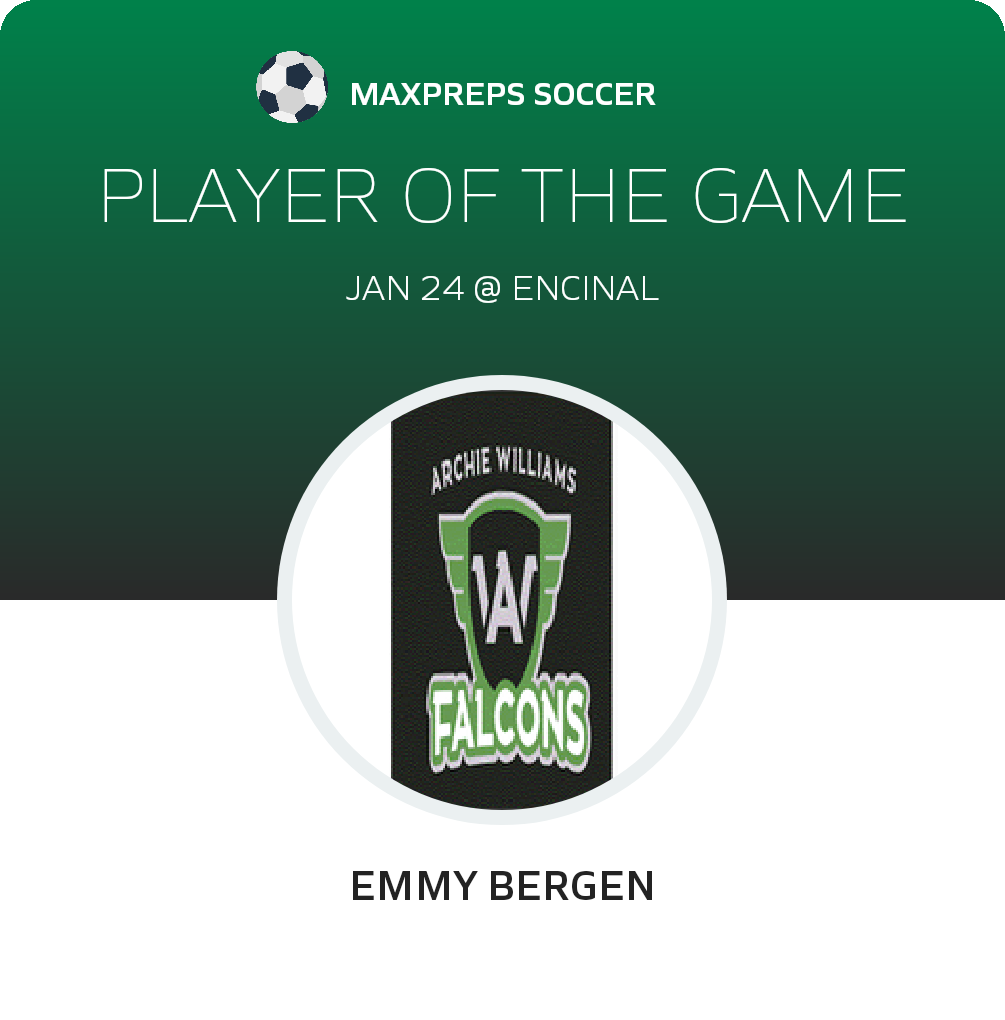 Congratulations to #14 Emmy Bergen for being selected the Archie Williams Girls Soccer Player of the Match.