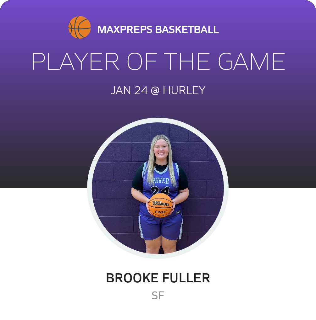 Congratulations to #24 Brooke Fuller for being selected the River View Girls Basketball Player of the Game.
