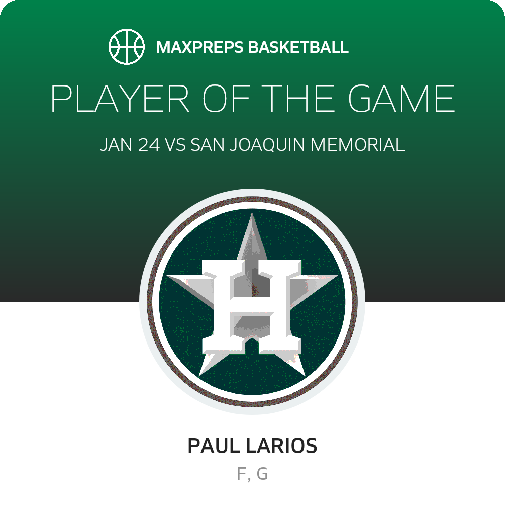 Congratulations to #12 Paul Larios for being selected the Hoover Freshman Basketball Player of the Game.