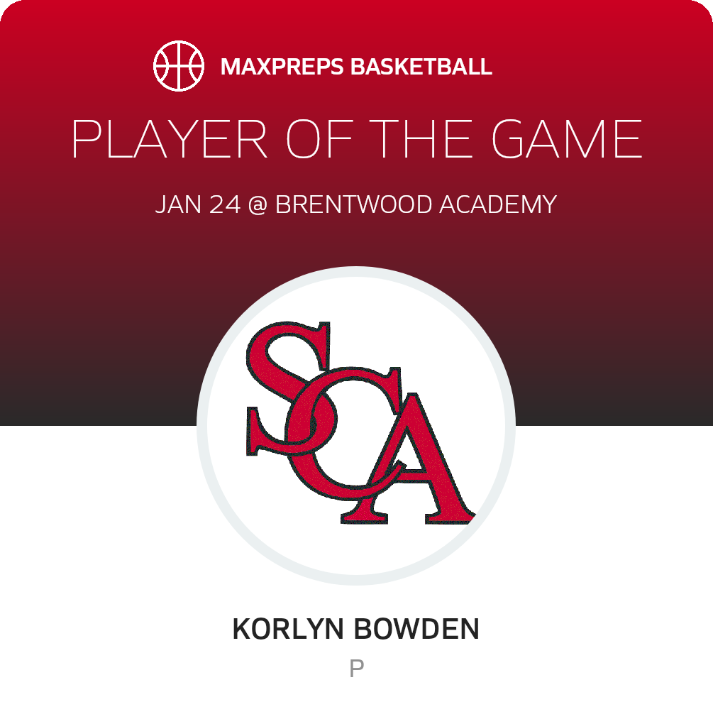 Congratulations to #4 Korlyn Bowden for being selected the St. Cecilia Academy Girls Basketball Player of the Game.