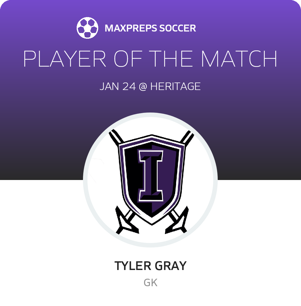 Congratulations to #1 Tyler Gray for being selected the Independence Soccer Player of the Match.