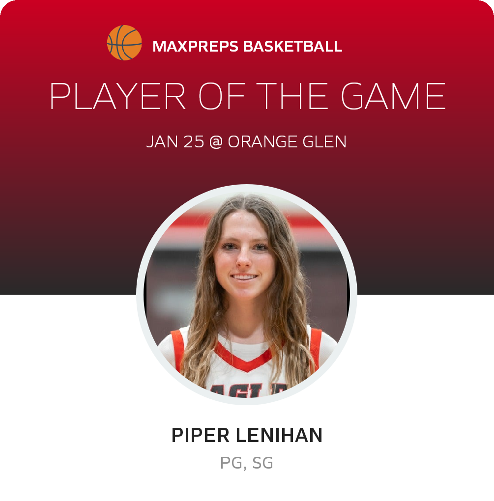 January 25, 2023: Escondido, CA 92027 Santa Fe Christian Eagles (Solana Beach, CA) backers were in high spirits Wednesday as they witnessed their basketball squad bounce the host Orange Glen Patriots (Escondido, CA), 47-20 in a league bout.