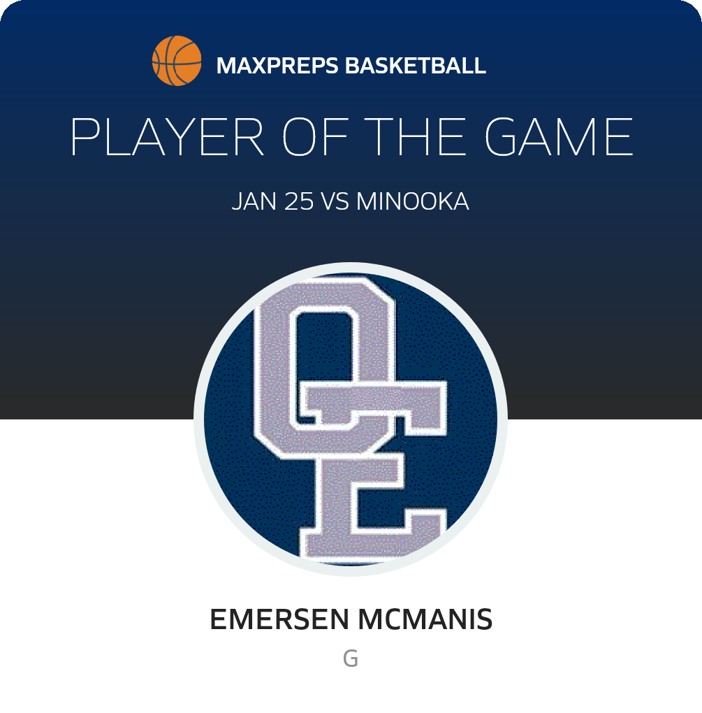 Congratulations to #21 Emersen McManis for being selected the Oswego East Girls Freshman Basketball Player of the Game.