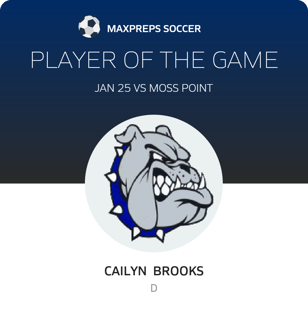 Congratulations to #21 Cailyn Brooks for being selected the Vancleave Girls Soccer Player of the Match.