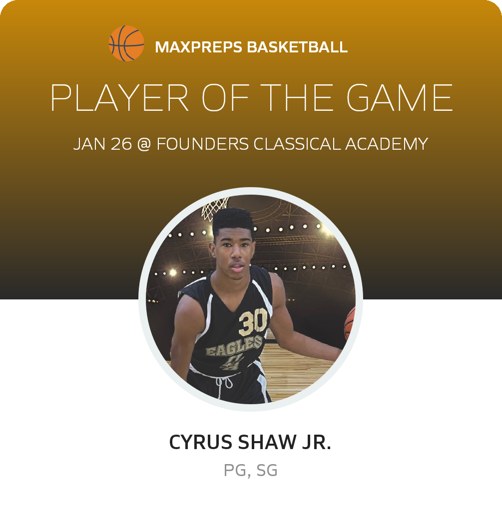 Congratulations to #2 Cyrus Shaw Jr. for being selected the Universal Academy Basketball Player of the Game.