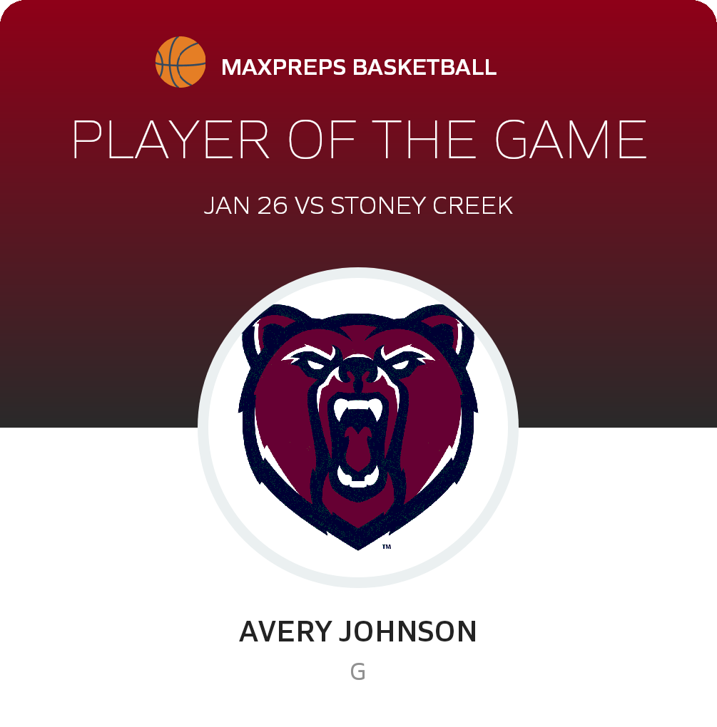 Congratulations to #20 Avery Johnson for being selected the Berkley JV Basketball Player of the Game.