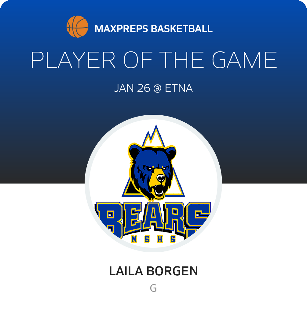 Congratulations to #24 Laila Borgen for being selected the Mt. Shasta Girls Basketball Player of the Game.