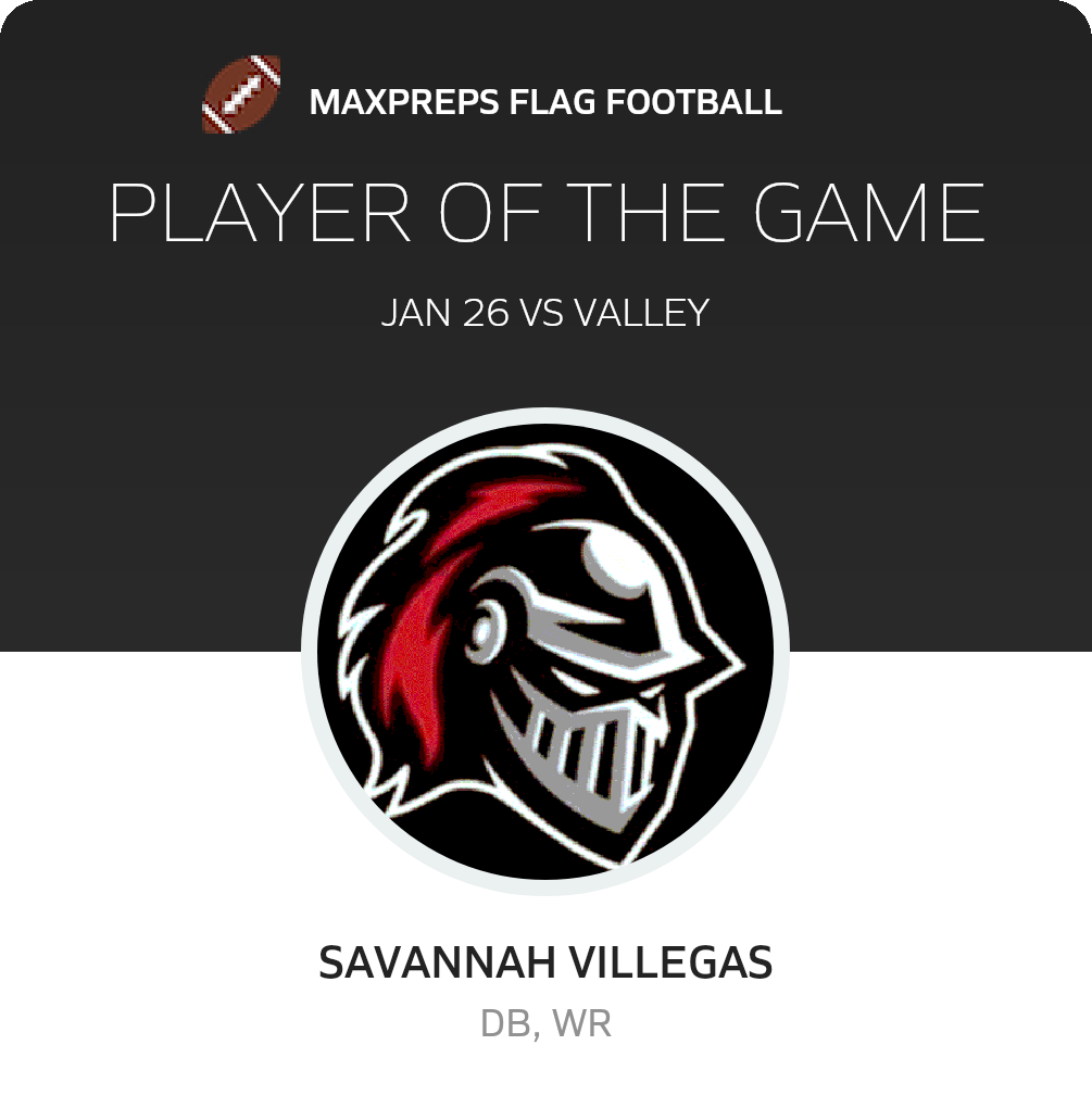 Congratulations to #9 Savannah Villegas for being selected the Mater Academy East Las Vegas Girls Flag Football Player of the Game.