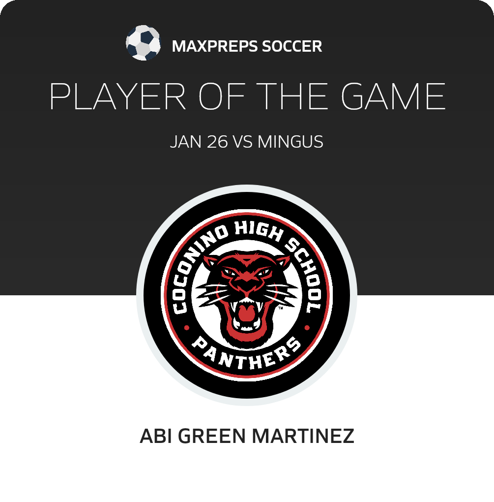 Congratulations to #18 Abi Green Martinez for being selected the Coconino Girls Soccer Player of the Match.