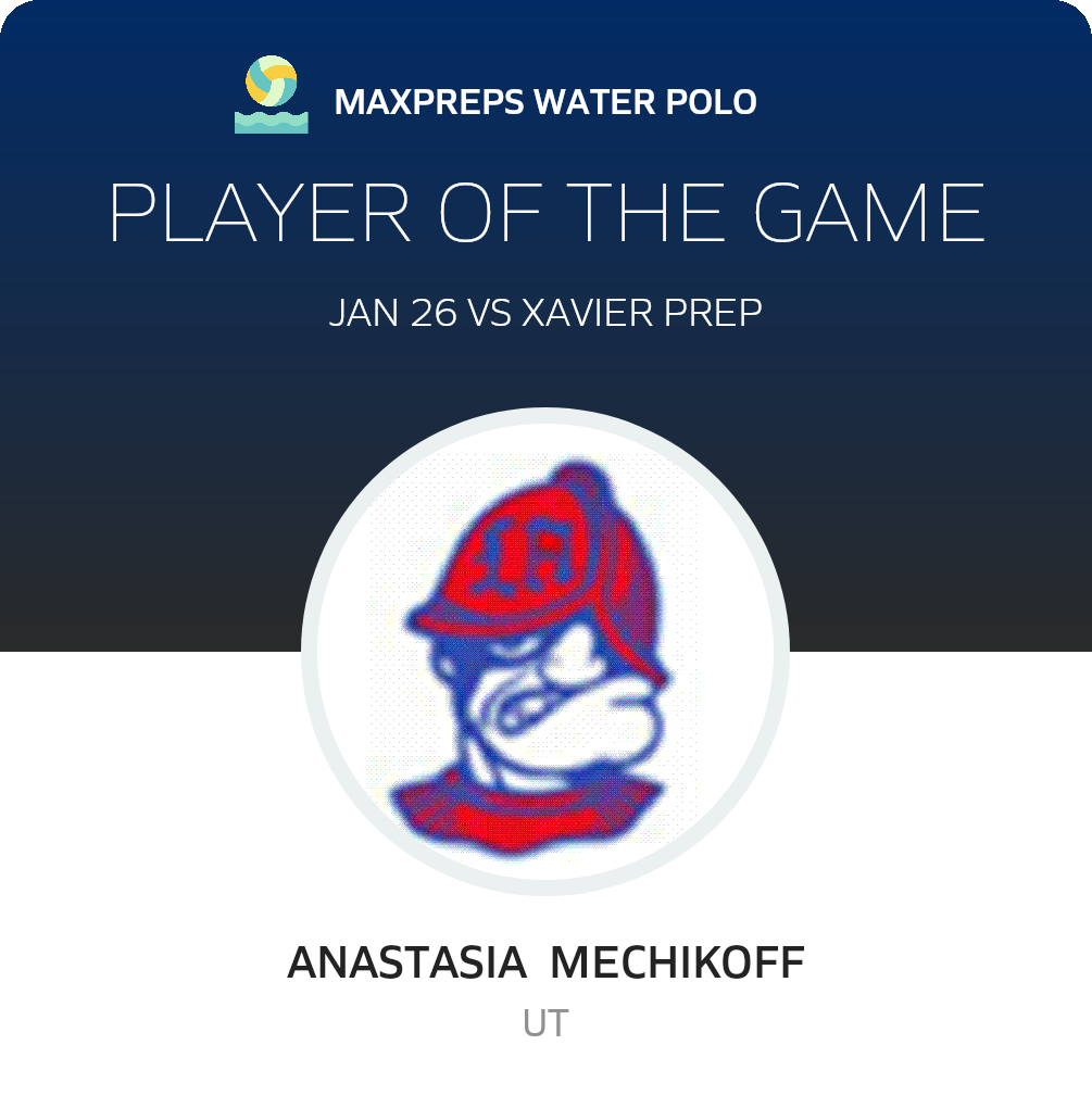 Congratulations to #2 Anastasia Mechikoff for being selected the Los Altos Girls Water Polo Player of the Game.