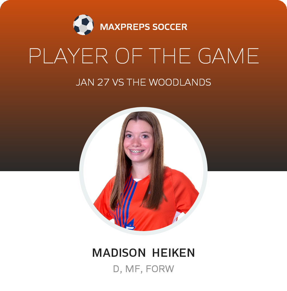 Congratulations to #5 Madison Heiken for being selected the Grand Oaks Girls Soccer Player of the Match.