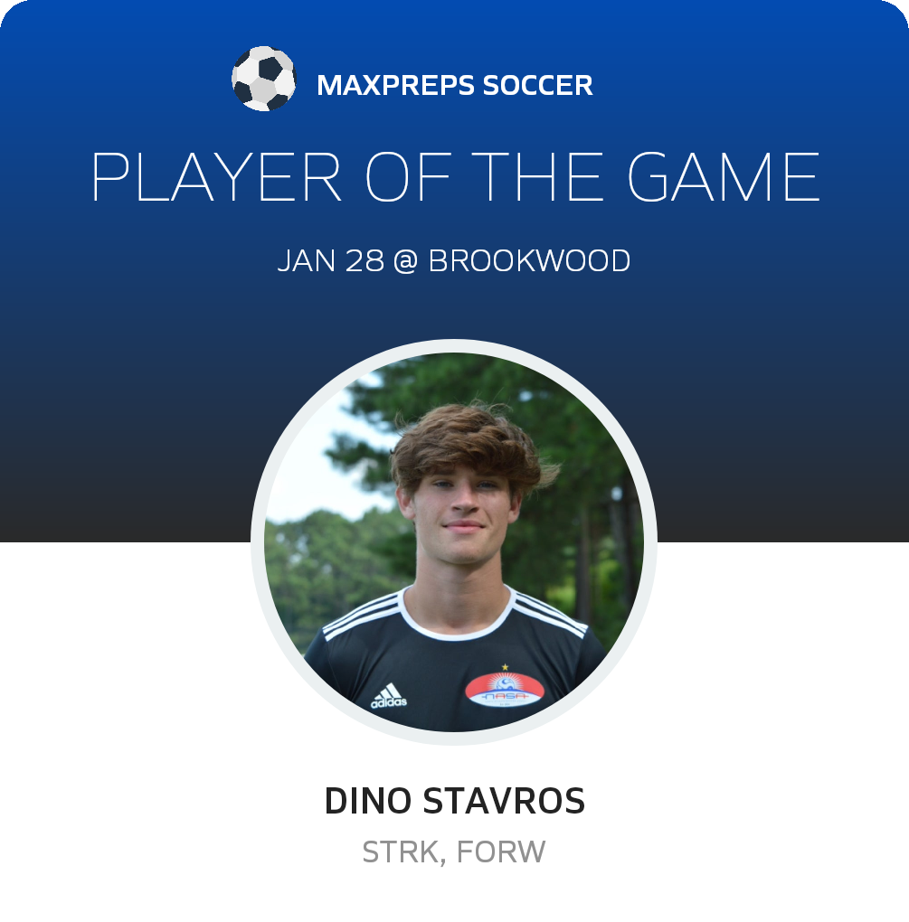 Congratulations to #7 Dino Stavros for being selected the South Forsyth Soccer Player of the Match.