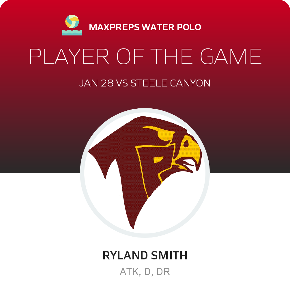 Congratulations to #9 Ryland Smith for being selected the Torrey Pines Girls Water Polo Player of the Game.