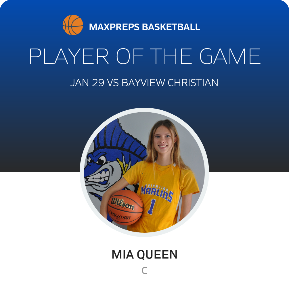 Congratulations to #1 Mia Queen for being selected the Seaside Christian Academy Girls Basketball Player of the Game.