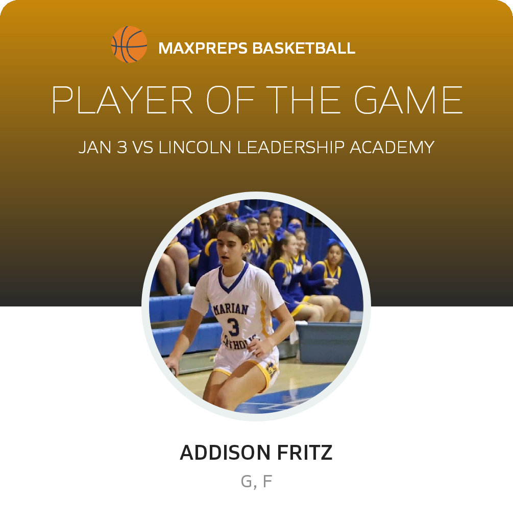 In their next game, the meet the Mahanoy Area Golden Bears (Mahanoy City, PA) in a Schuylkill County 3 match, on Friday, January 6. Marian Catholic will attempt to move on its 7-1 season record. The Golden Bears enter the match with a 0-3 record after their 48-44 non-league loss to Tamaqua (Tamaqua, PA).