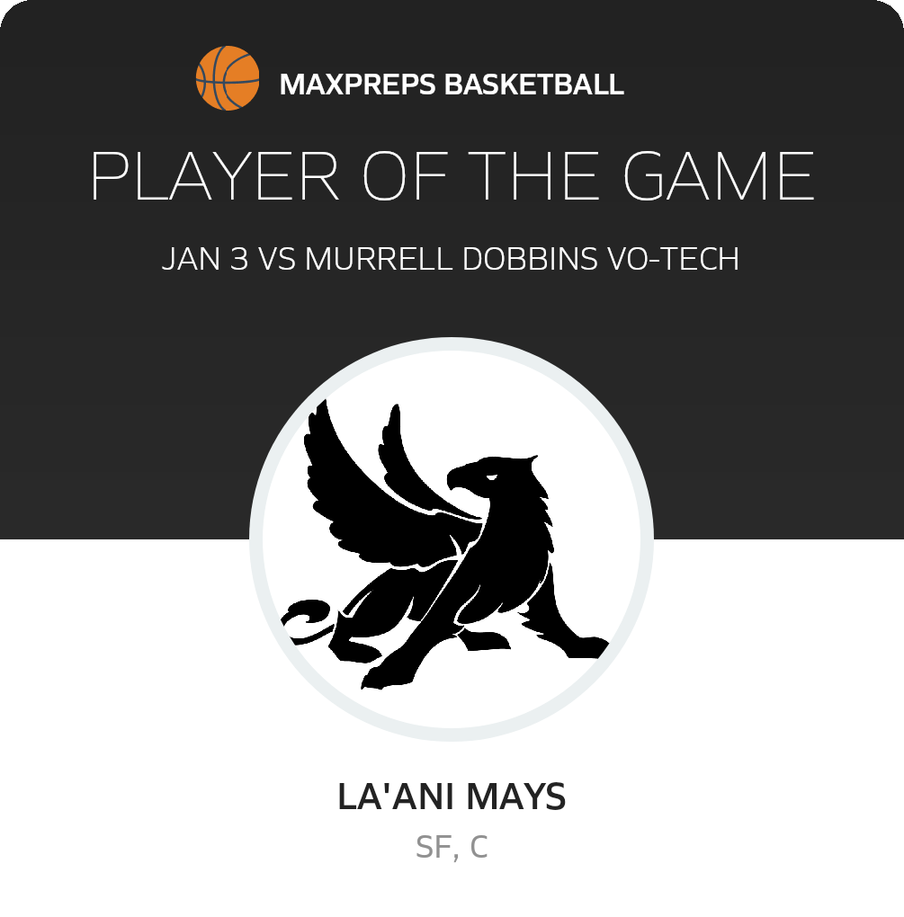 Congratulations to #22 La'Ani Mays for being selected the Academy at Palumbo Girls Basketball Player of the Game.