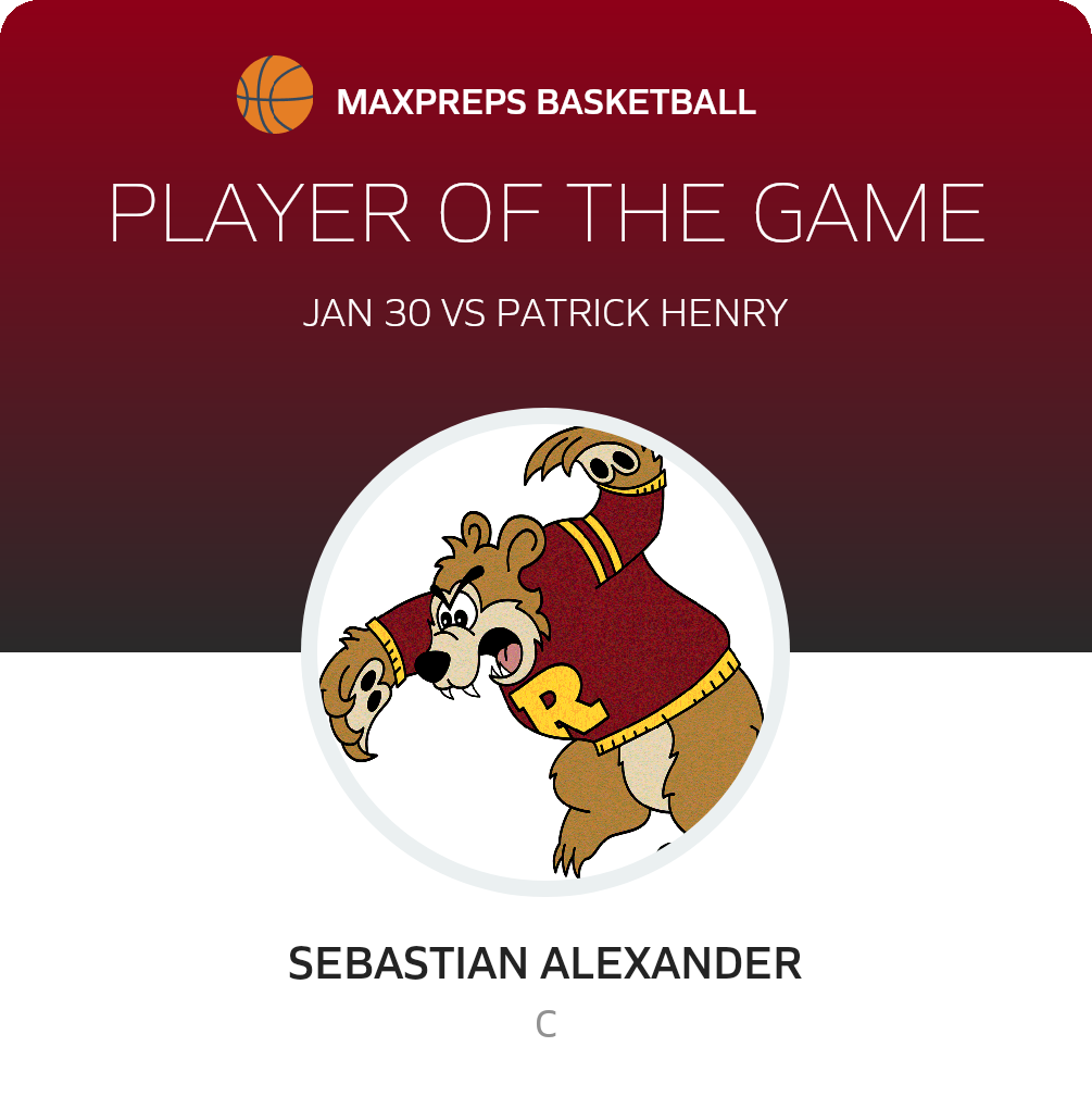 Congratulations to #23 Sabastian Alexander for being selected the Roosevelt Basketball Player of the Game.