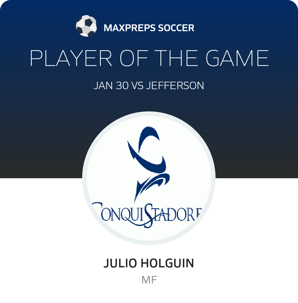 Congratulations to #17 Julio Holguin for being selected the Del Valle JV Soccer Player of the Match.