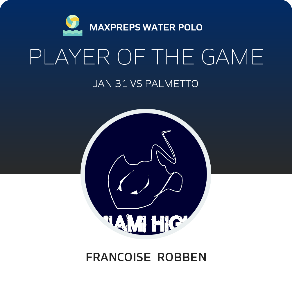 Congratulations to #2 Francoise Robben for being selected the Miami Girls Water Polo Player of the Game.