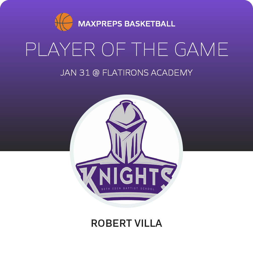 January 31, 2023: Westminster, CO 80234 The Beth Eden Baptist Knights basketball team (Wheat Ridge, CO), was overwhelmed 66-18 in Tuesday's league battle with the host Flatirons Academy Bison (Westminster, CO)