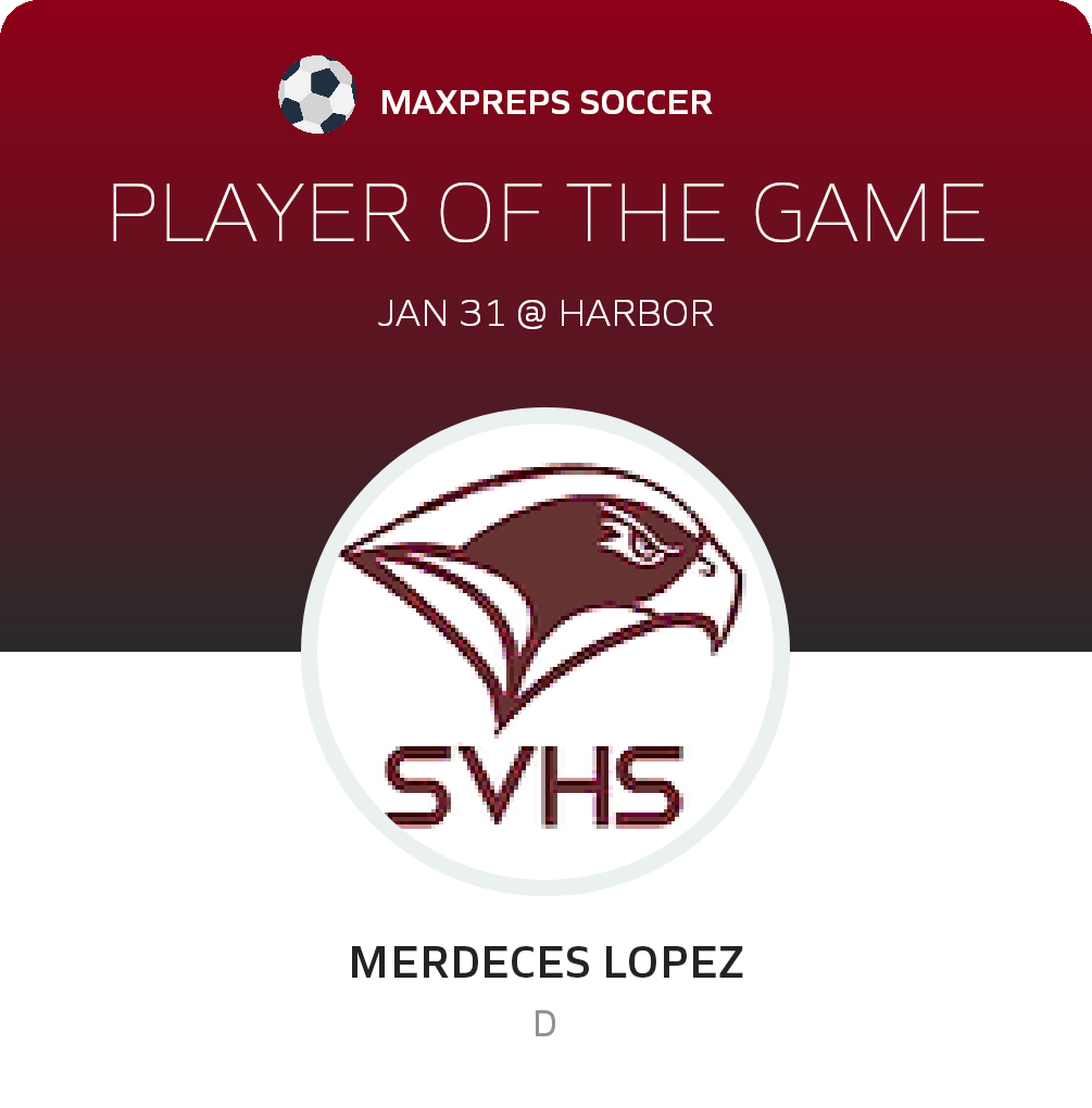 Congratulations to #14 Merdeces Lopez for being selected the Scotts Valley Girls Soccer Player of the Match.