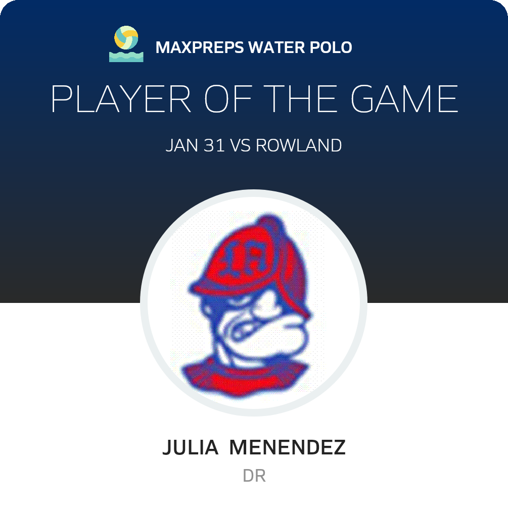 Congratulations to #3 Julia Menendez for being selected the Los Altos Girls Water Polo Player of the Game.