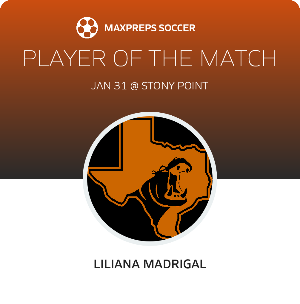Congratulations to #24 Liliana Madrigal for being selected the Hutto Girls JV Soccer Player of the Match.
