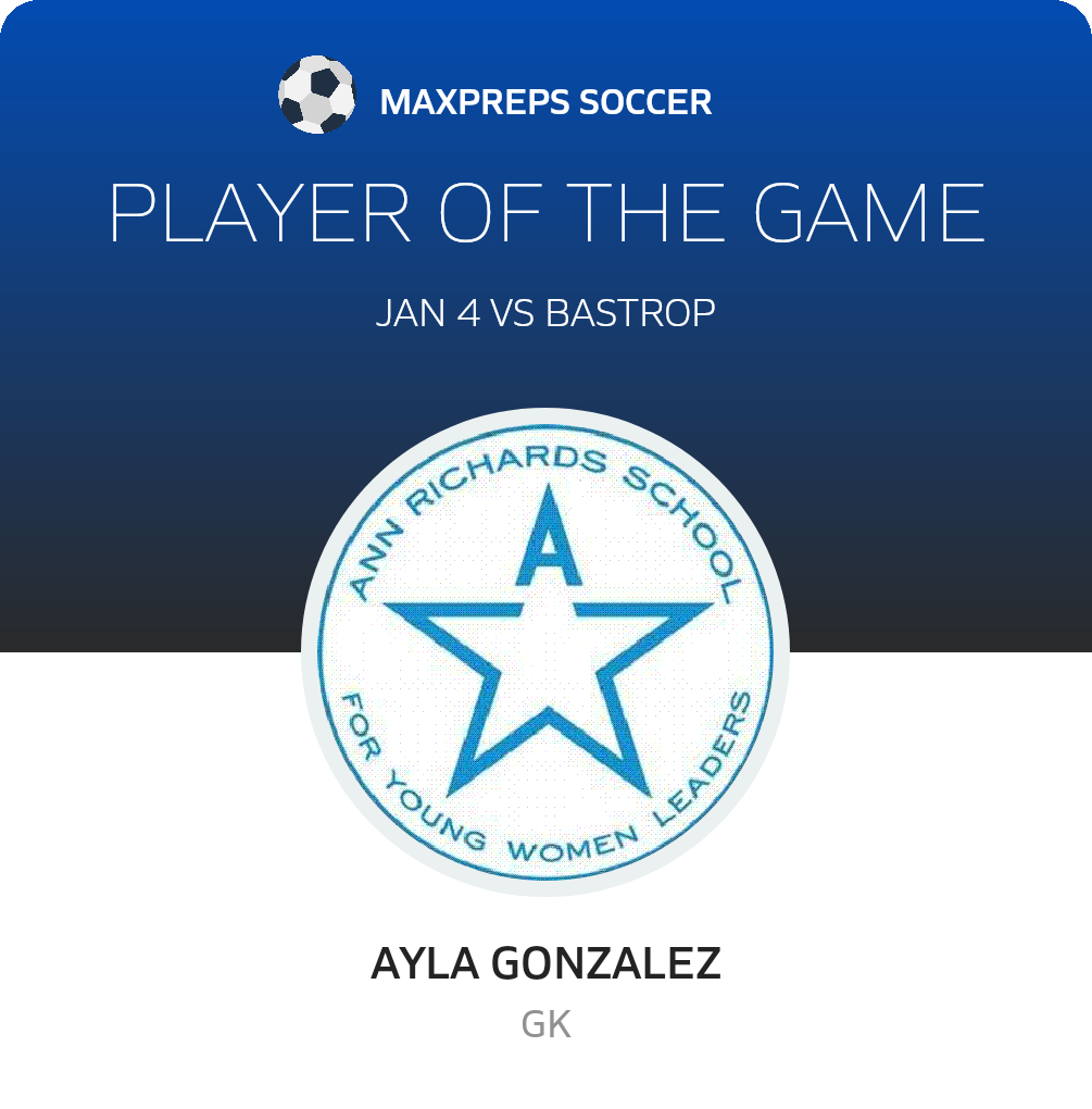 Congratulations to #1 Ayla Gonzalez for being selected the Richards School for Young Women Leaders Girls Soccer Player of the Match.