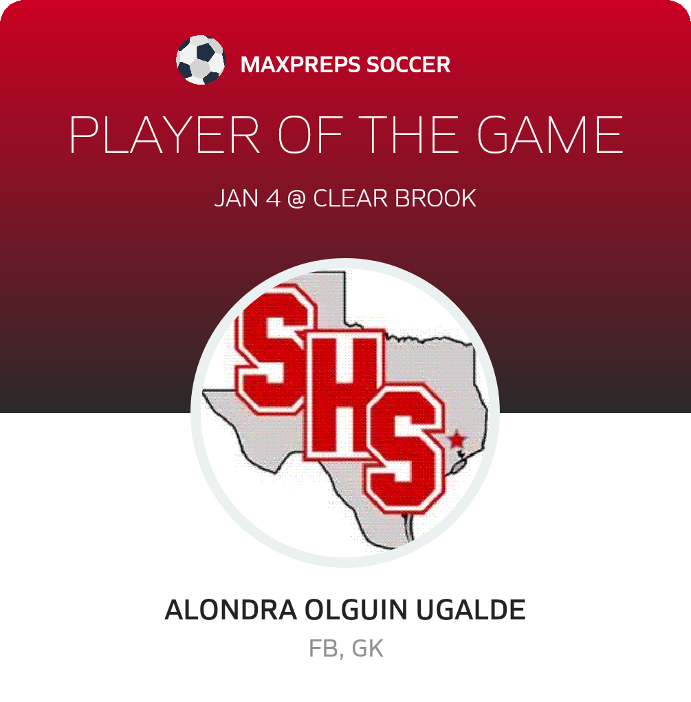 Congratulations to #15 Alondra Olguin Ugalde for being selected the Splendora Girls Soccer Player of the Match.