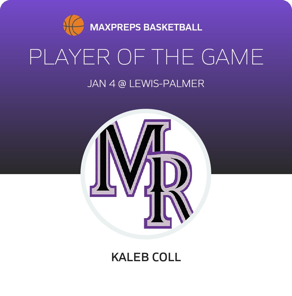 Congratulations to #25 Kaleb Coll for being selected the Mesa Ridge JV Basketball Player of the Game.