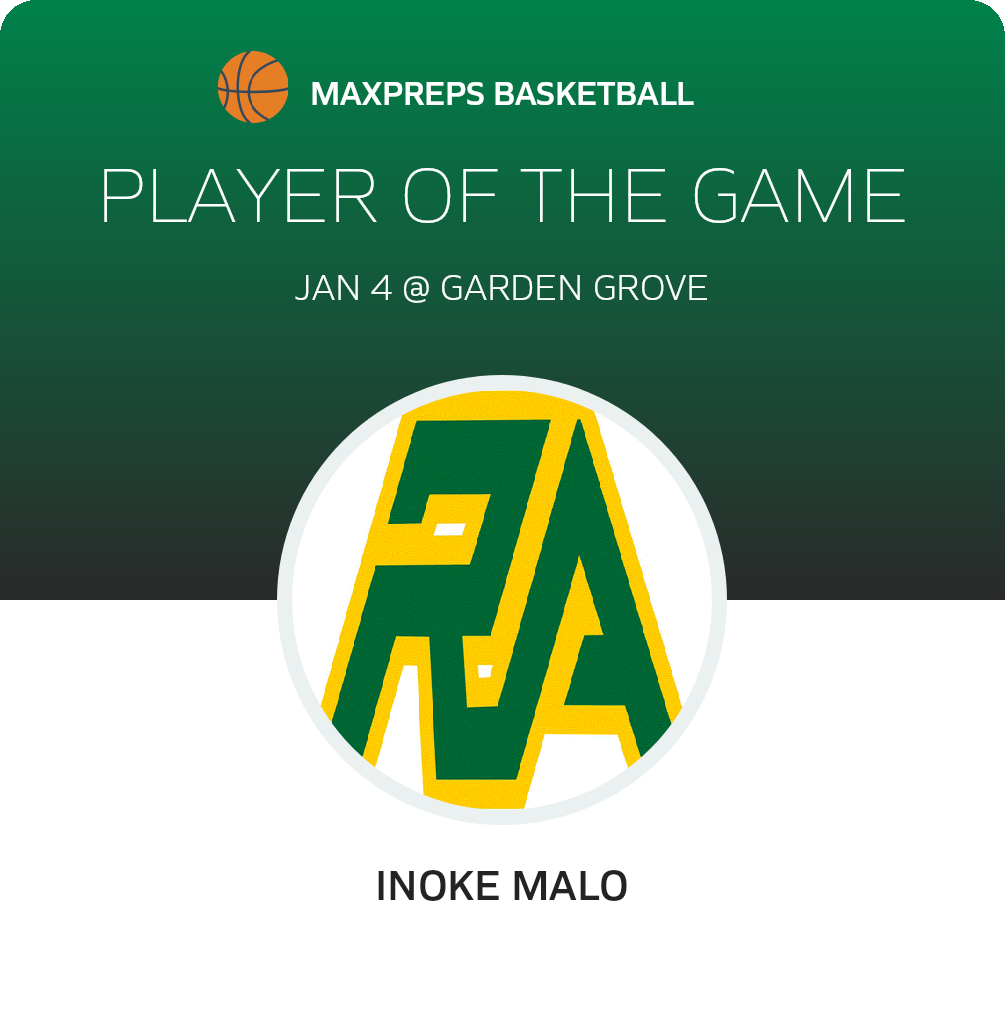 Congratulations to #24 Inoke Malo for being selected the Rancho Alamitos Basketball Player of the Game.