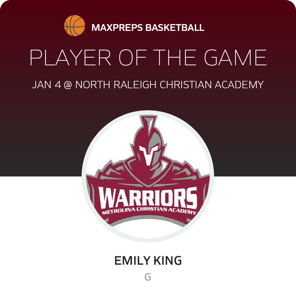 In their next game, the Warriors battle the South Charlotte Thunder (Matthews, NC) in a non-league challenge, on Tuesday, January 7. Metrolina Christian Academy will attempt to improve on its 8-5 season record. The Thunder come into the challenge with a 3-10 record after their 35-30 non-league win over Providence Athletic Club (Columbia, SC).