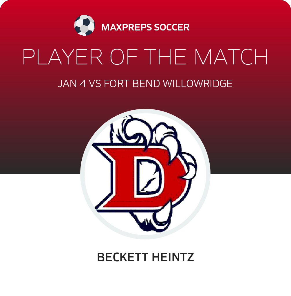 Congratulations to #24 Beckett Heintz for being selected the Dawson Soccer Player of the Match.