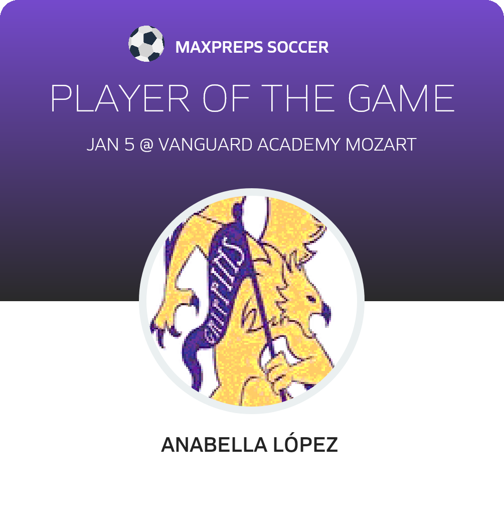 Congratulations to #20 Anabella López for being selected the IDEA College Prep Girls Soccer Player of the Match.