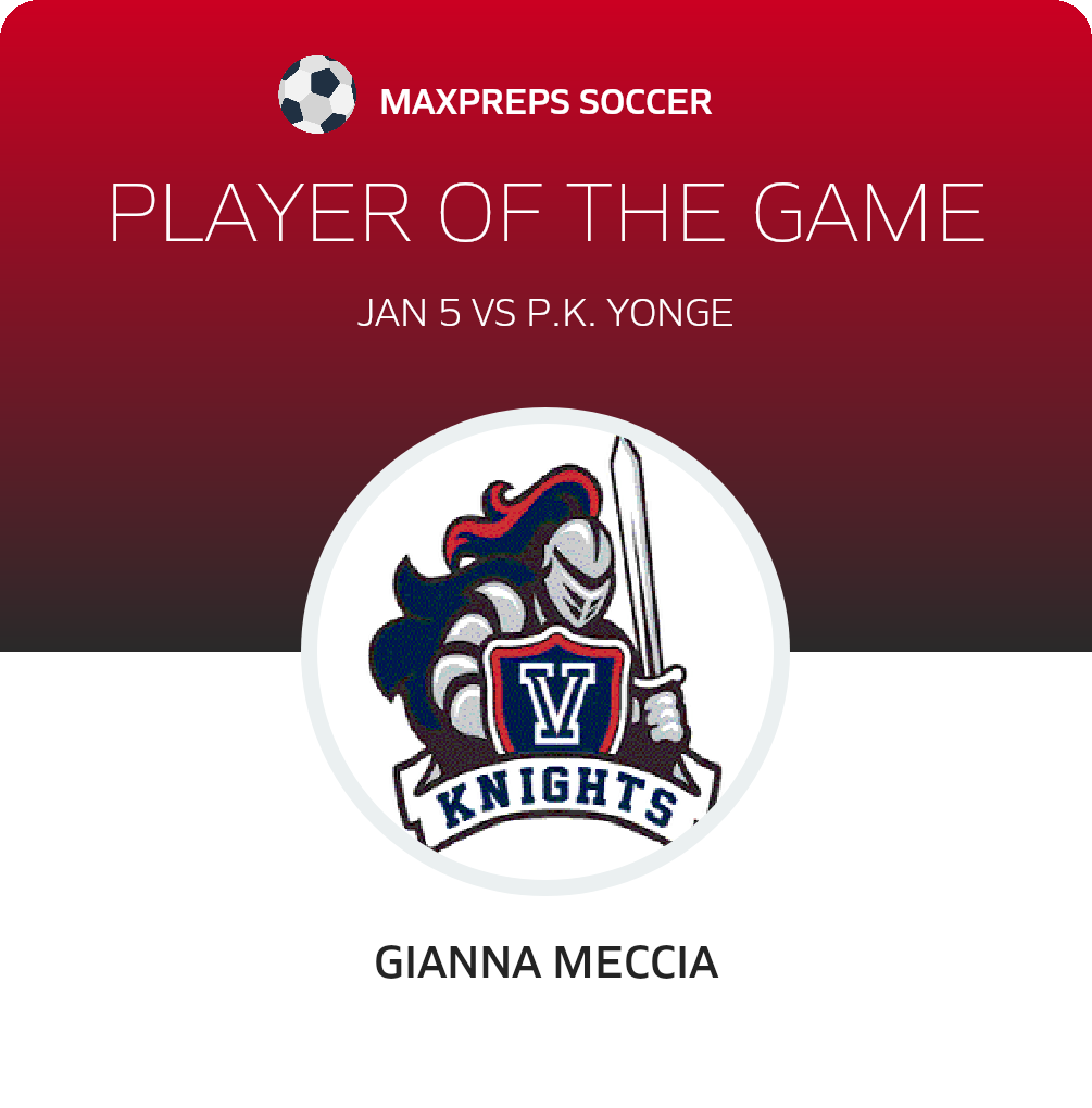 Congratulations to #1 Gianna Meccia for being selected the Vanguard Girls Soccer Player of the Match.