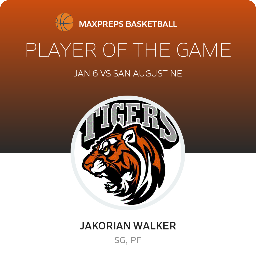 Congratulations to #3 Jakorian Walker for being selected the West Sabine Basketball Player of the Game.