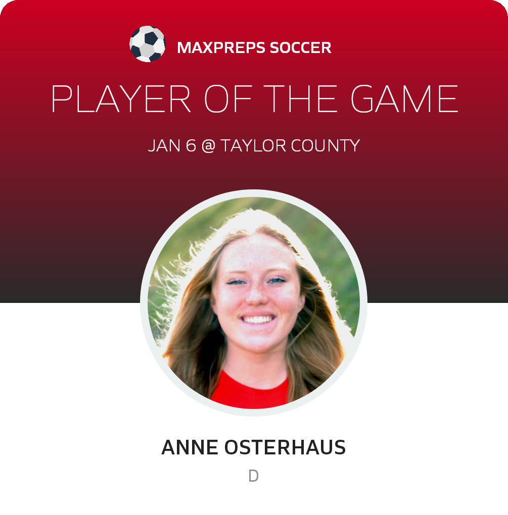 Congratulations to #10 Addison Carter for being selected the Taylor County Girls Soccer Player of the Match.