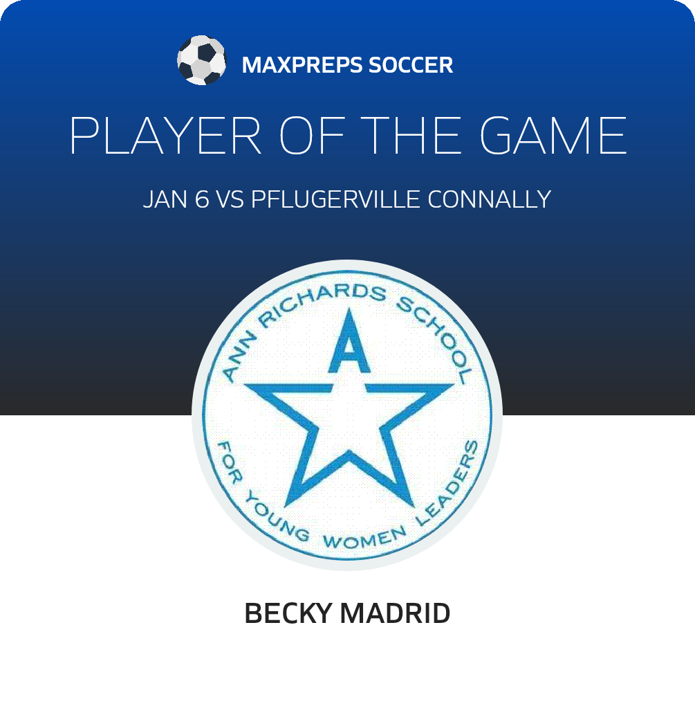 Congratulations to #8 Becky Madrid for being selected the Richards School for Young Women Leaders Girls Soccer Player of the Match.