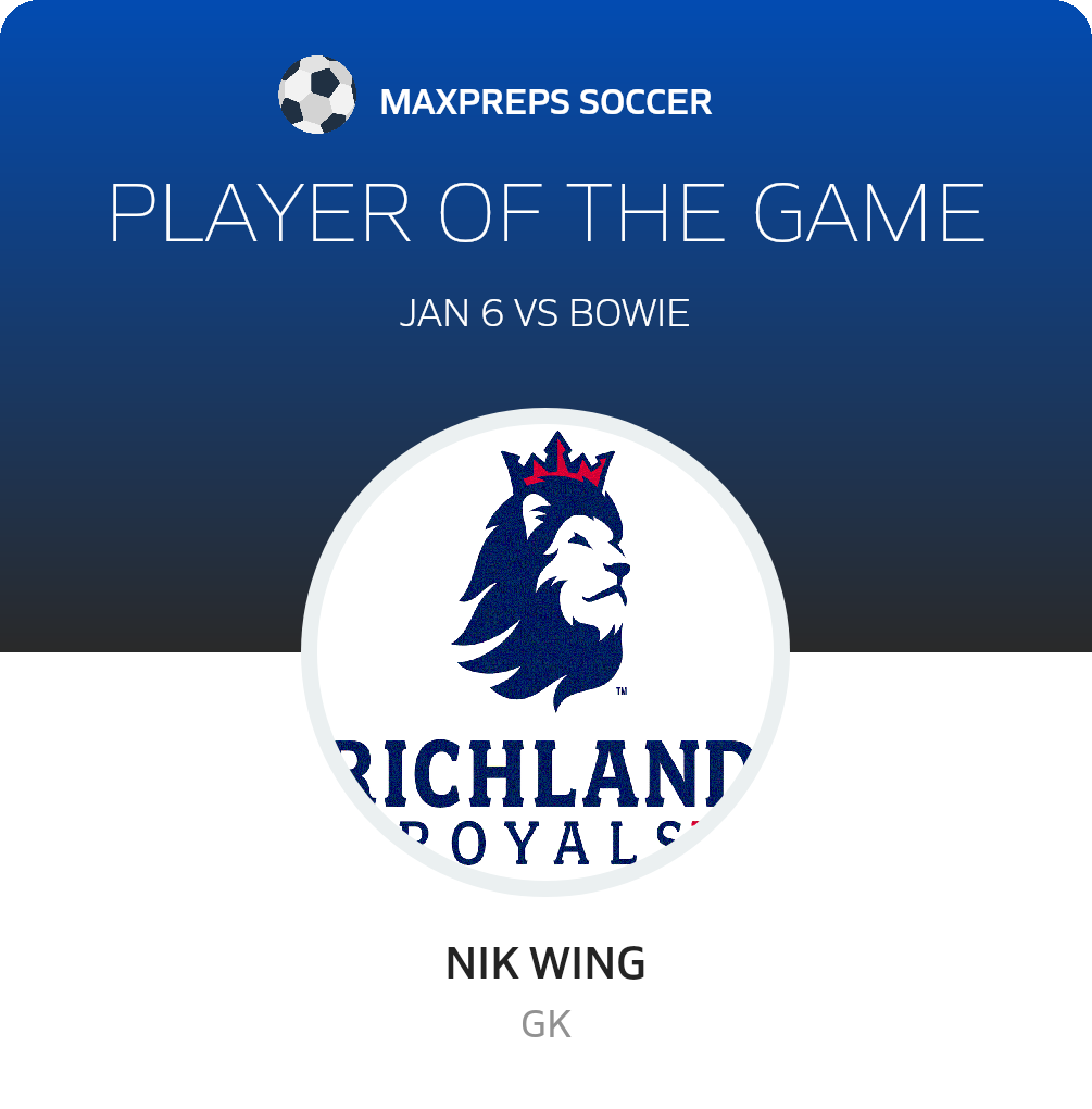 Congratulations to #1 Nik Wing for being selected the Richland Soccer Player of the Match.