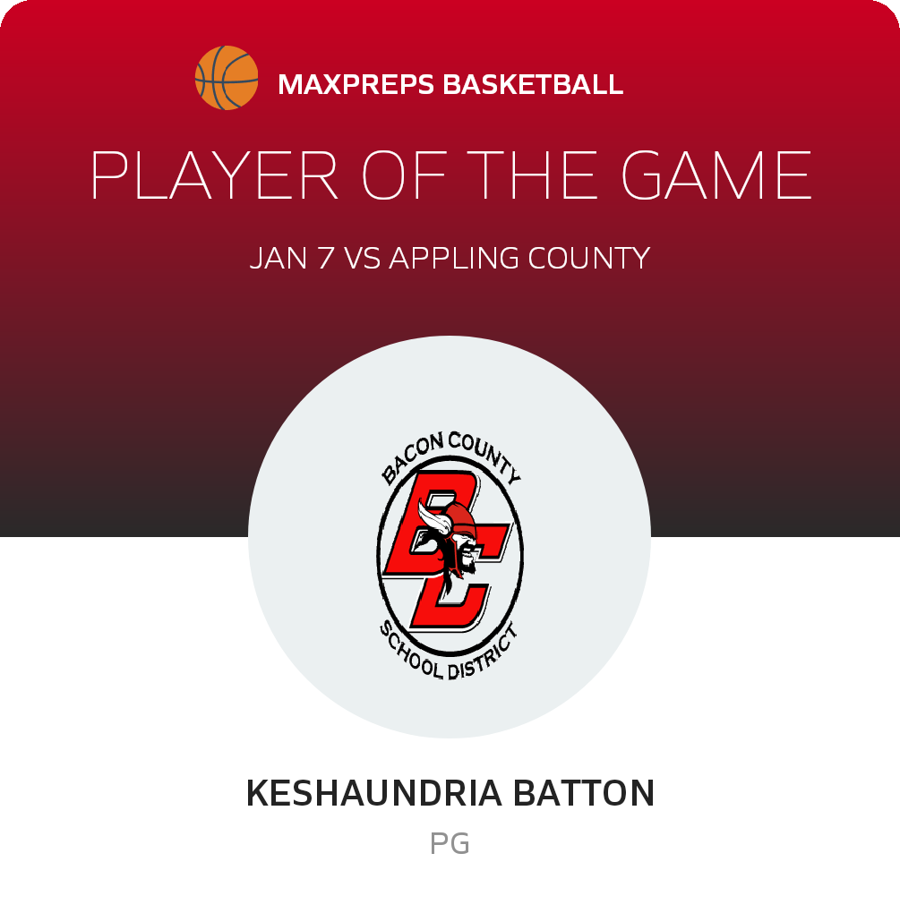 The Raiders now sport a 8-1 record. They put it on the line next when they travel to Telfair County for a non-league contest on Tuesday, January 10. Bacon County will play a Trojans squad coming off a 65-39 non-league loss to Montgomery County (Mt. Vernon, GA). The Trojans record now stands at 7-5.
