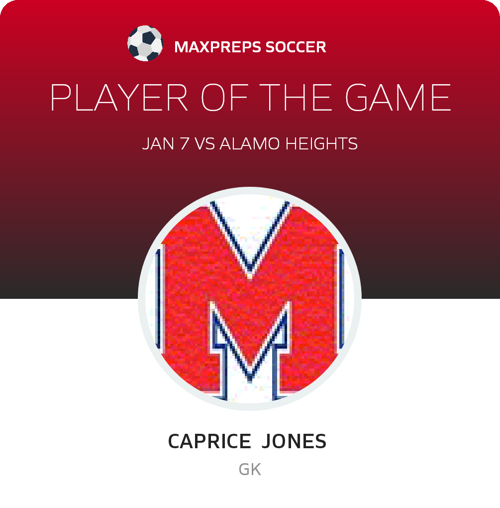 Congratulations to #0 Caprice Jones for being selected the Midway Girls Soccer Player of the Match.