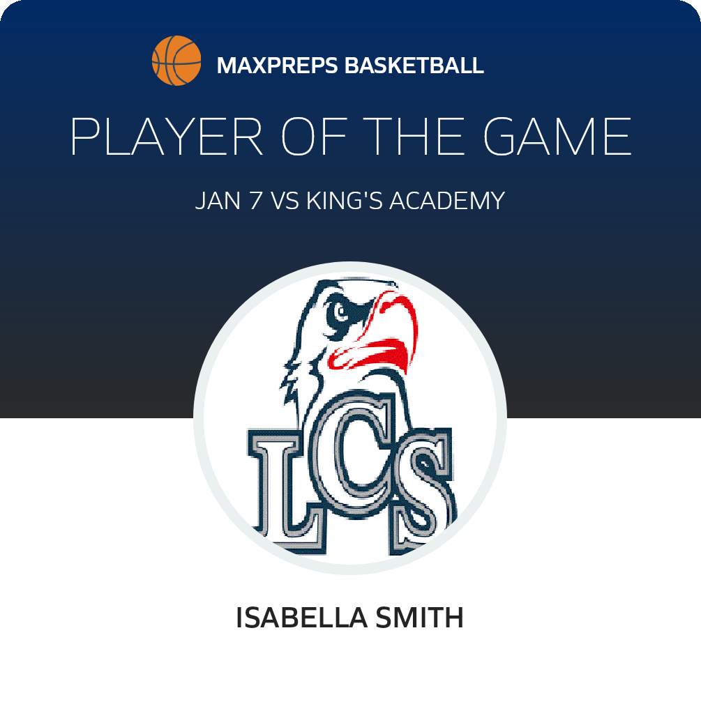 Congratulations to #2 Isabella Smith for being selected the Longview Christian Girls Basketball Player of the Game.