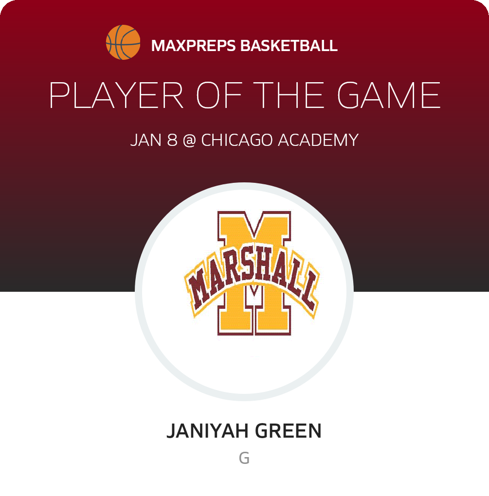 Congratulations to #12 Janiyah Green for being selected the Chicago Marshall Girls Basketball Player of the Game.