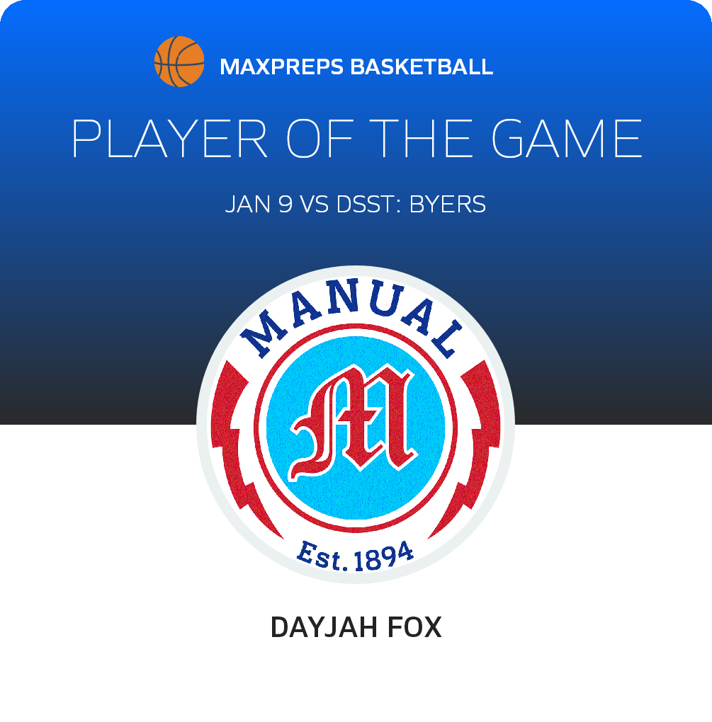 Congratulations to #2 Dayjah Fox for being selected the Manual Girls JV Basketball Player of the Game.